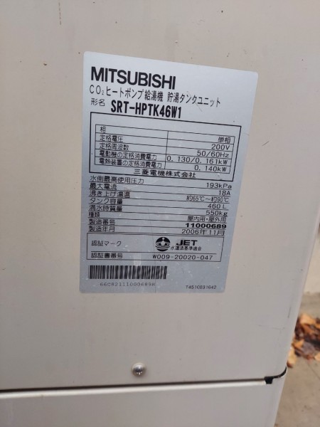 豊川市赤坂台 三菱電機自然冷媒CO2家庭用ヒートポンプ給湯機貯湯ユニットSRT-STK376D、ヒートポンプユニット エコキュート交換工事