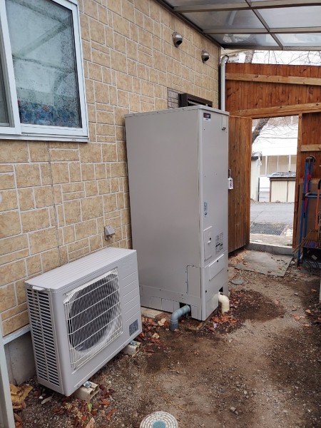 豊川市赤坂台 三菱電機エコキュート→三菱電機自然冷媒CO2家庭用ヒートポンプ給湯機貯湯ユニットSRT-STK376D、ヒートポンプユニット エコキュート交換工事