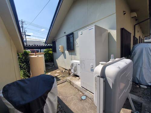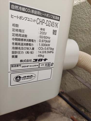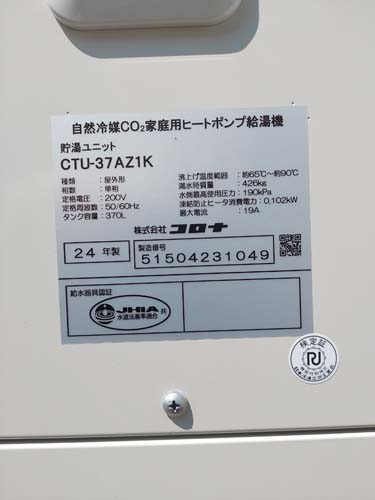 津島市宇治町亀田 コロナ自然冷媒CO2家庭用ヒートポンプ給湯機 貯湯ユニットCTU-37AZ1K、ヒートポンプユニットCHP-DZ451K エコキュート交換工事