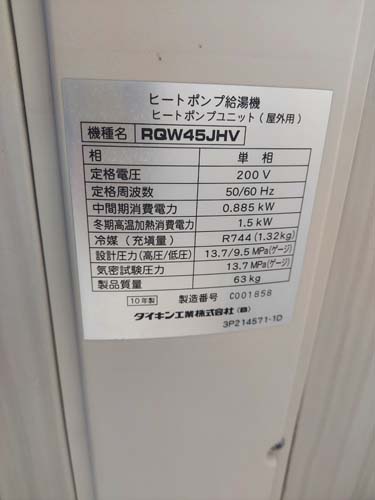 稲沢市牛踏町 ダイキン工業ヒートポンプ給湯機 ヒートポンプユニットRQW45JHV→コロナ自然冷媒CO2家庭用ヒートポンプ給湯機 ヒートポンプユニットCHP-DZ451K エコキュート交換工事