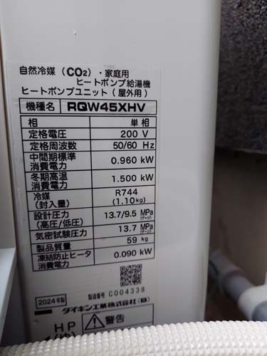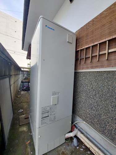 瀬戸市上本町 コロナ自然冷媒CO2家庭用ヒートポンプ給湯機 ヒートポンプユニットCHP-458K→ダイキン工業自然冷媒CO2家庭用ヒートポンプ給湯機貯湯ユニットTU37XFHV、ヒートポンプユニットRQW45XHV エコキュート交換工事