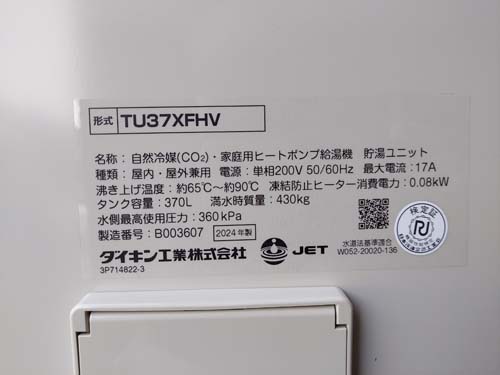 瀬戸市上本町 ダイキン工業自然冷媒CO2家庭用ヒートポンプ給湯機貯湯ユニットTU37XFHV、ヒートポンプユニットRQW45XHV エコキュート交換工事