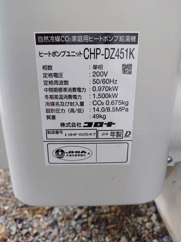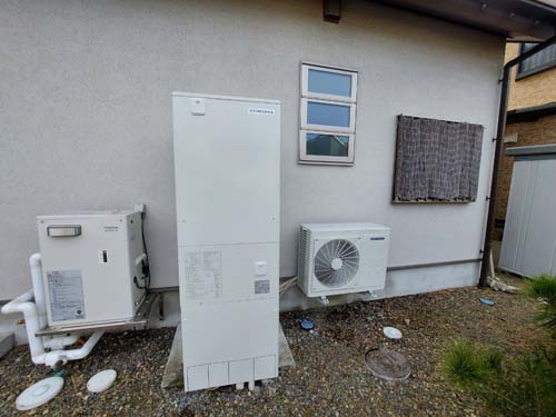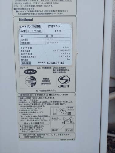 稲沢市牛踏町 Nationalヒートポンプ給湯機貯湯ユニットHE-37K2QK→コロナ自然冷媒CO2家庭用ヒートポンプ給湯機貯湯ユニットCTU-37AZ1K、ヒートポンプユニットCHP-DZ451K エコキュート交換工事