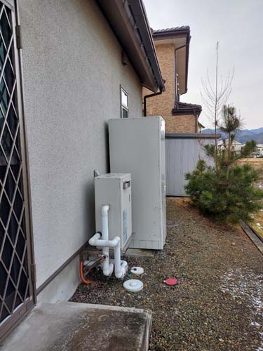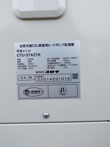 稲沢市牛踏町 コロナ自然冷媒CO2家庭用ヒートポンプ給湯機貯湯ユニットCTU-37AZ1K、ヒートポンプユニットCHP-DZ451K エコキュート交換工事