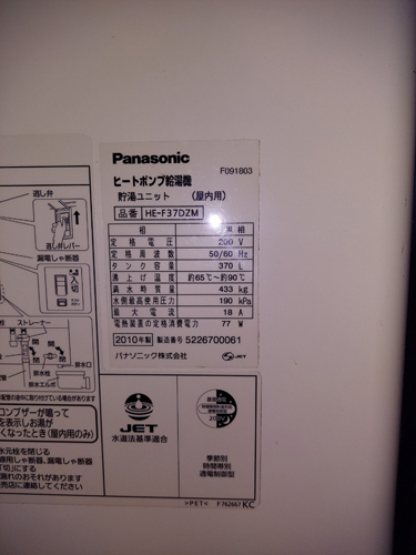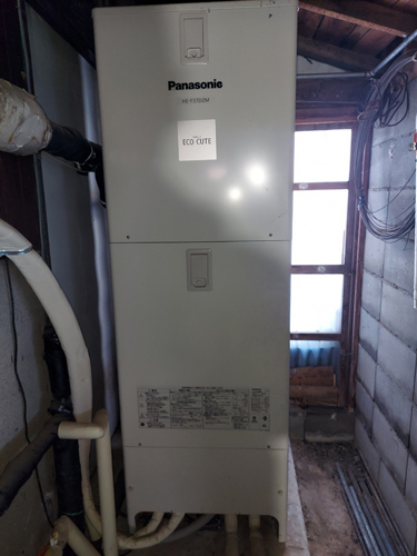一宮市乾町 パナソニックヒートポンプ給湯機 貯湯ユニットHE-F37DZM→コロナ自然冷媒CO2家庭用ヒートポンプ給湯機 ヒートポンプユニットCHP-DZ451K エコキュート交換工事