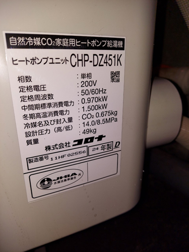 一宮市乾町 コロナ自然冷媒CO2家庭用ヒートポンプ給湯機 ヒートポンプユニットCHP-DZ451K エコキュート交換工事|愛知県のエコキュート専門交換工事店|愛知エコキュート交換ショップ補助金対応可能